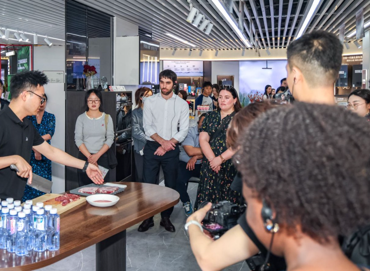 在现场体验后,智利驻华大使馆书记Madame Javiera对存放多日仍保抓有余情状的车厘子暗意咋舌,阿根廷驻华大使馆书记Diego Sokolowicz则赞好意思解冻后的牛排依然汁水充盈、肉质弹嫩。“很难思象,这些食材逾越半个地球来到成都,仍能保抓如斯崭新情状。”