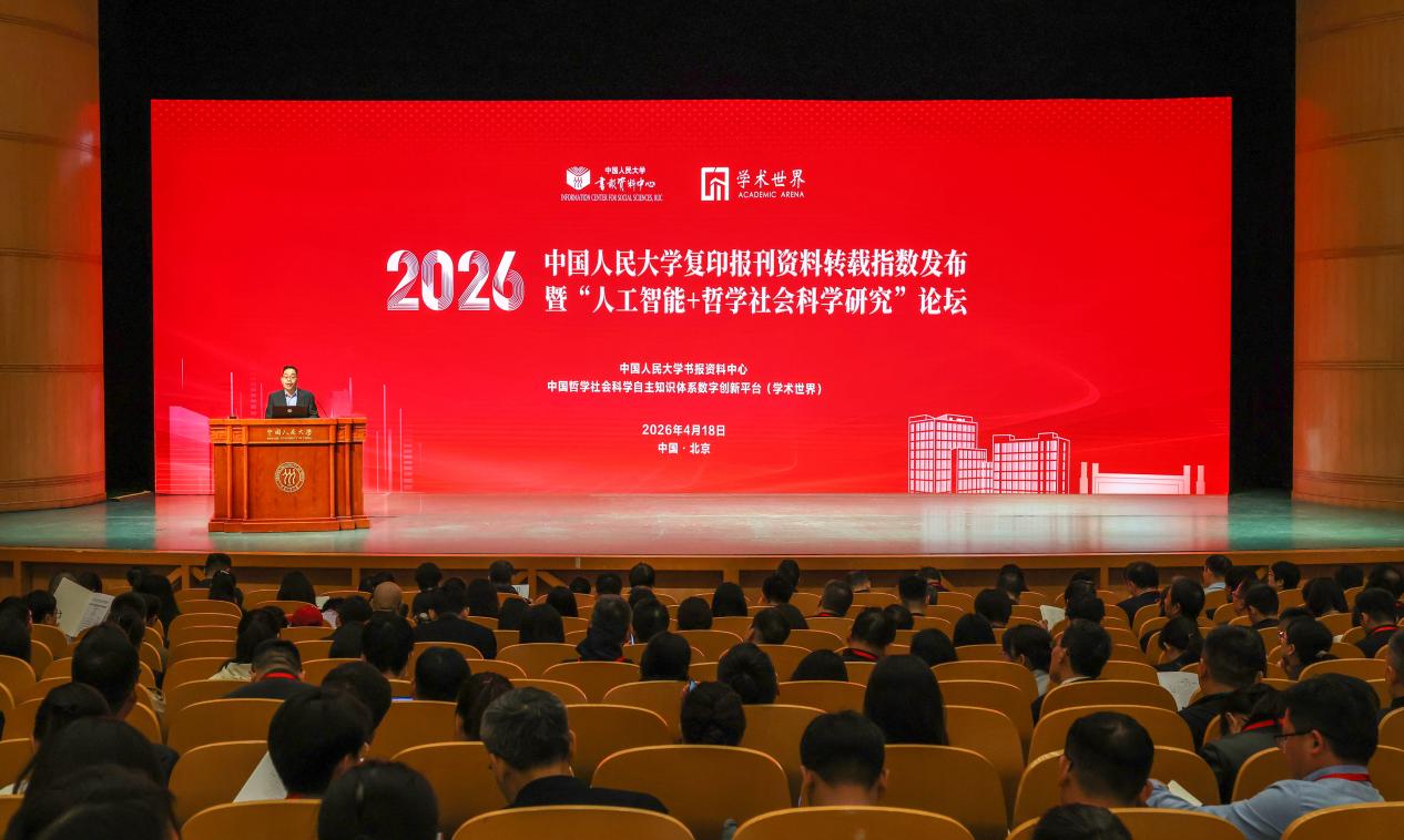 【内行网科技概述报谈】4月18日,由中国东谈主民大学书报尊府中心、中国形而上学社会科学自主常识体总共字创新平台(学术寰球)垄断的“2026年中国东谈主民大学复印报刊尊府转载指数发布暨‘东谈主工智能+形而上学社会科学盘问’论坛”在中国东谈主民大学举行。