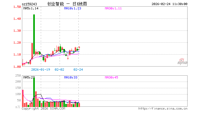 2月24日,纵容午间收盘,创业板东说念主工智能ETF招商(159243)涨2.83%,报1.164元,成交额2987.7...