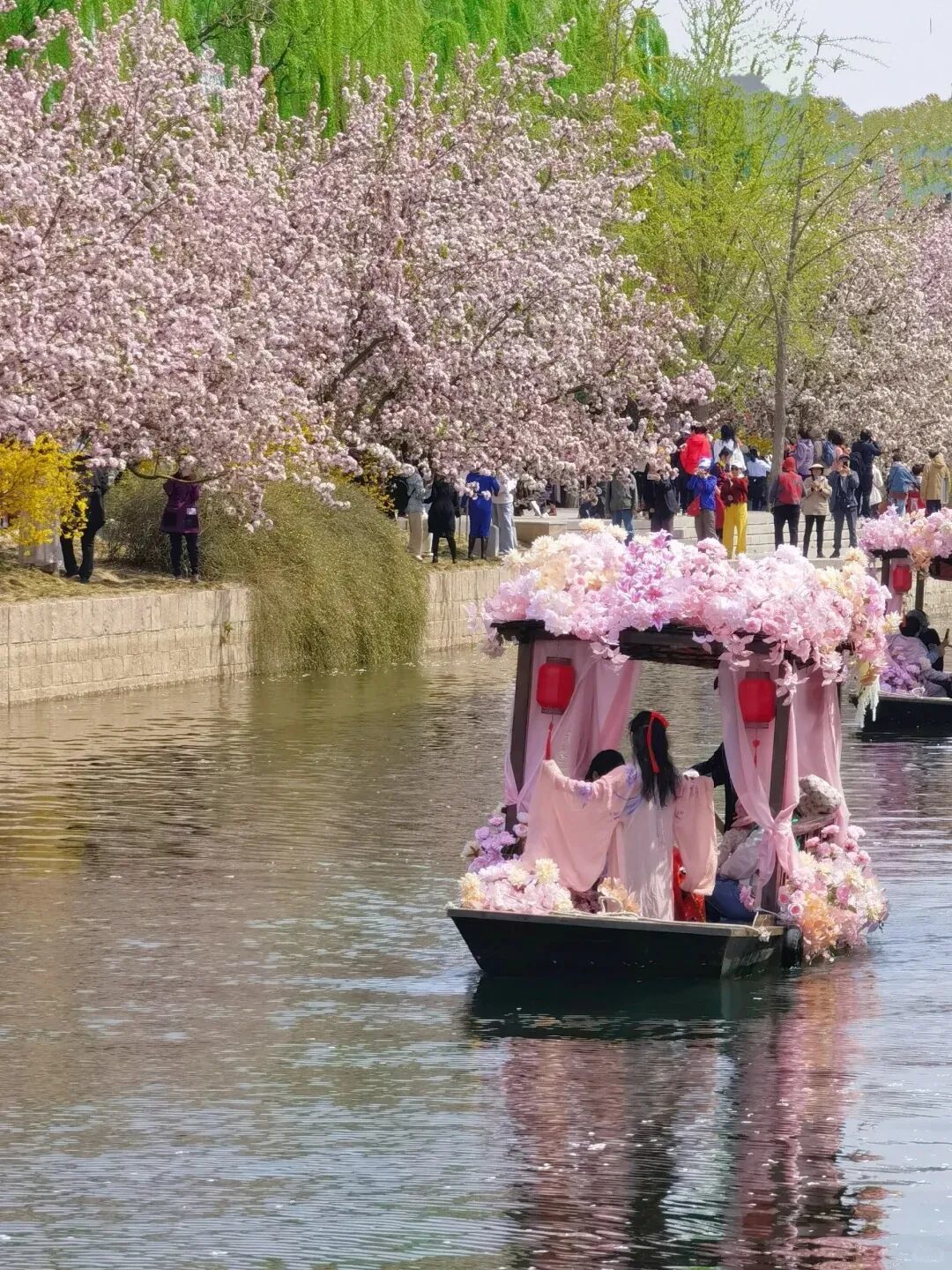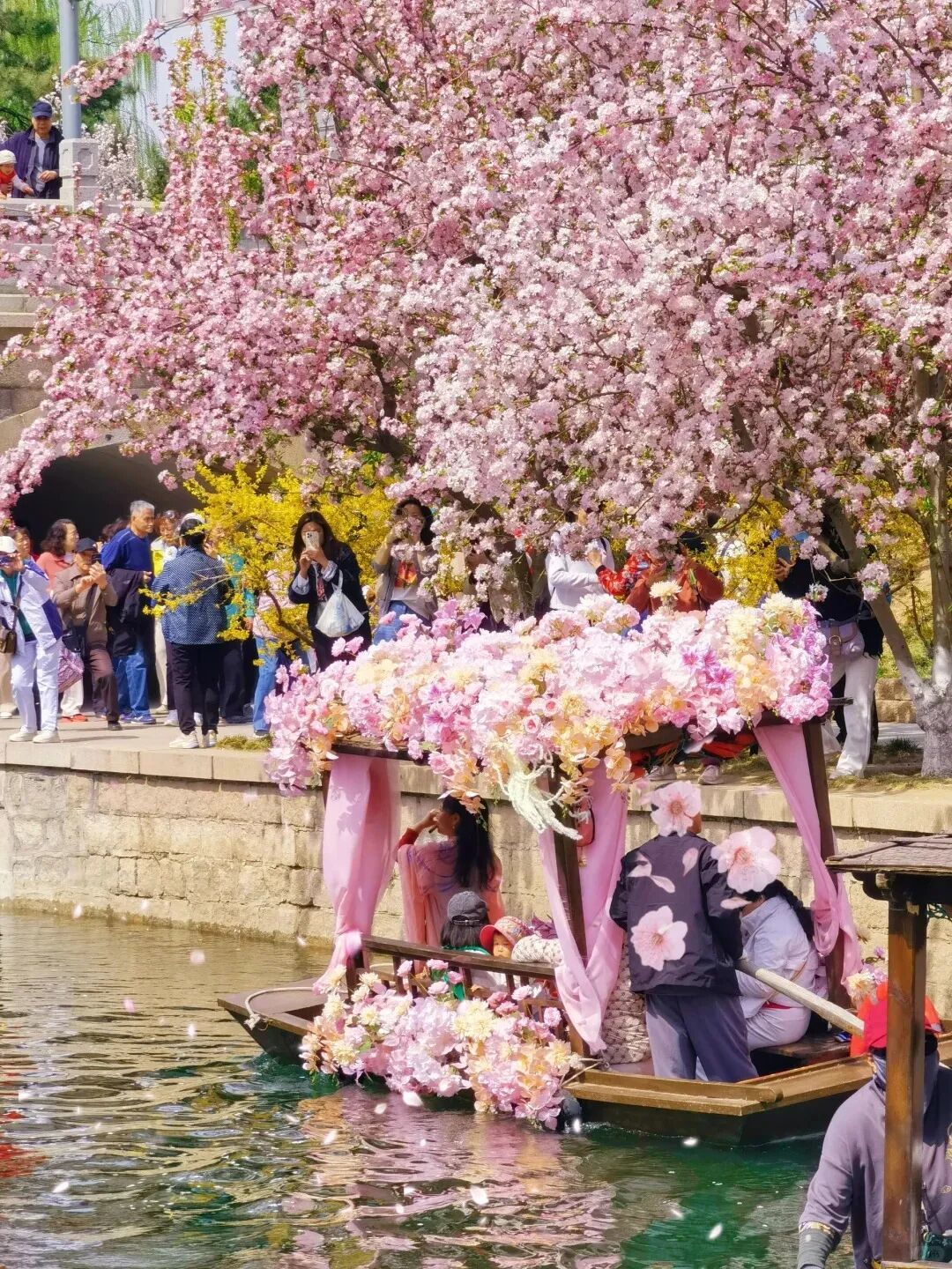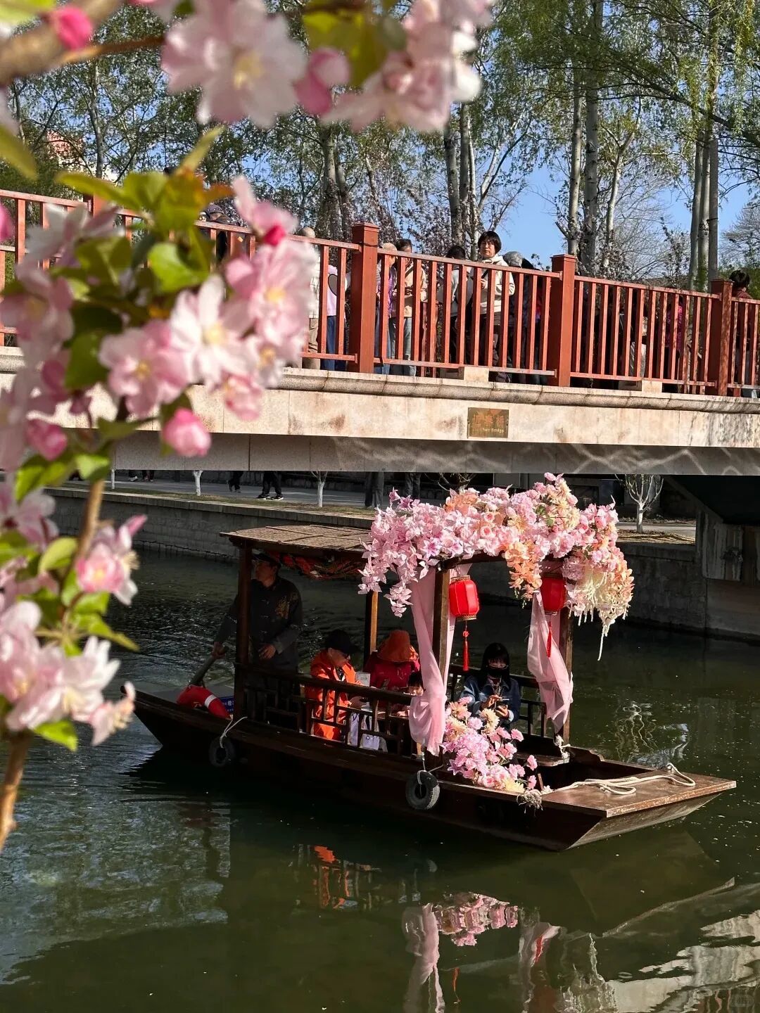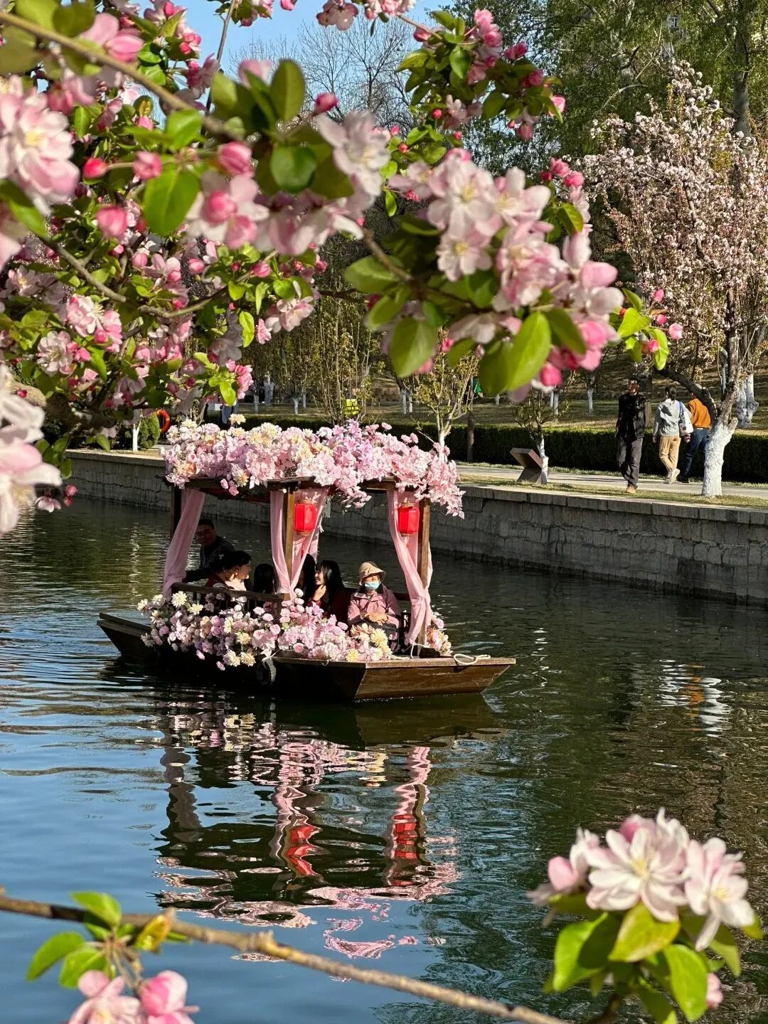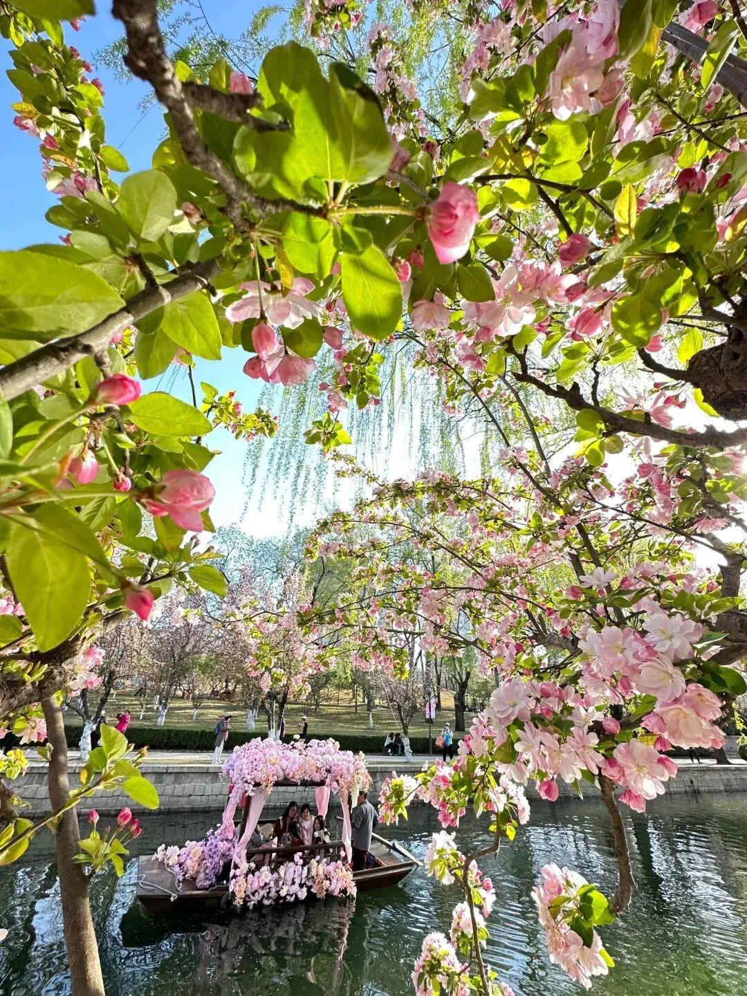 据市水务局音书,东土城沟国风摇橹船4月1日试初始,4月2日起崇拜初始,运营时辰约半个月。不同于在滨水步谈赏“海棠花溪”好意思景,市民搭客坐于船中,不错在河谈空间更近距离感受“花溪入画”的独有魔力。