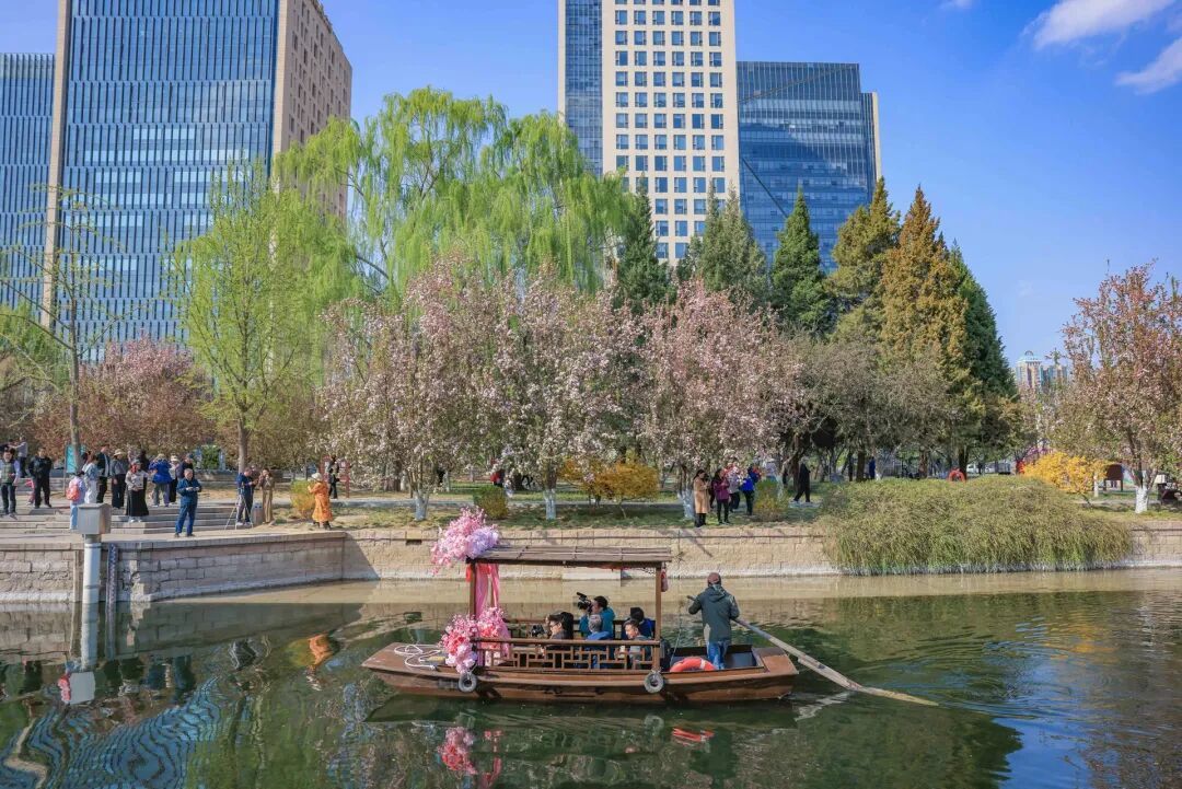 “开船喽……”昨全国午4时许,元多数城垣管事公园东土城沟船埠处,跟着一声响亮的吆喝,船夫解开摇橹船的绳子,船儿渐渐起程,在粼粼波光中轻轻摇曳,与岸边海棠相互衬托。