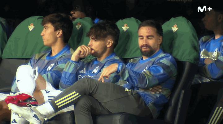 虎扑04月28日讯皇马客场对阵贝蒂斯的西甲比赛中,由ElDíaDespuésenMovistarPlus+镜头捕捉到皇骑兵长卡瓦哈尔在替补席上的一个看成,在赛后激发争议。