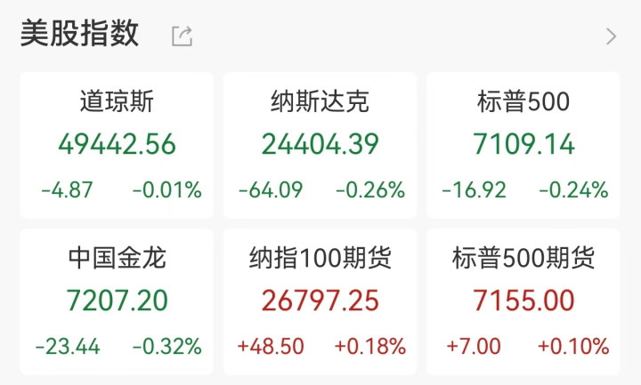 好意思东技艺周一,阛阓情感显得颇为严慎。跟着好意思国与伊朗为期两周的停战契约行将到期,且第二轮讨论前程充满变数,投资者纷纷选定赢利了结。戒指收盘,说念琼斯工业平均指数微跌4.87点,跌幅0.01%,报49442.56点;纳斯达克空洞指数下落0.26%,报24404.39点;标普500指数跌幅为0.24%,报7109.14点。