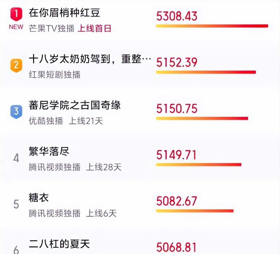 《在你眉梢种红豆》首播拿下热榜第一,势头迅猛。